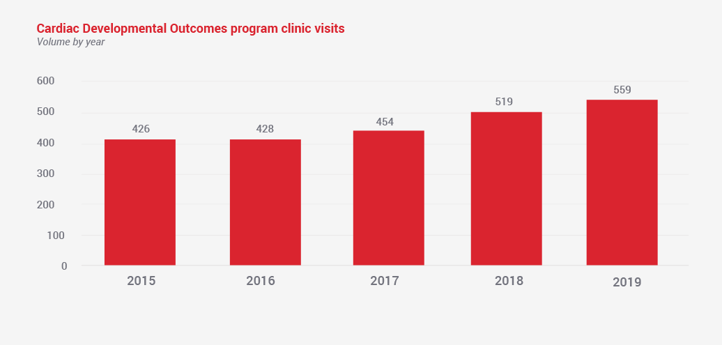 The Cardiac Developmental Outcomes program (CDOP) provides routine longitudinal neurodevelopmental follow up by board-certified developmental-behavioral pediatricians, neurodevelopmental disability pediatricians and child psychologists for all children who undergo surgery for congenital heart disease during the first three months of life. The CDOP team also provides longitudinal monitoring for children and adolescents with congenital heart disease and neurodevelopmental concerns who are referred by pediatric cardiologists and other providers. Our program is the most mature and comprehensive developmental outcomes program in Texas and we see not only Texas Children’s Hospital patients, but also children from other programs across the state.